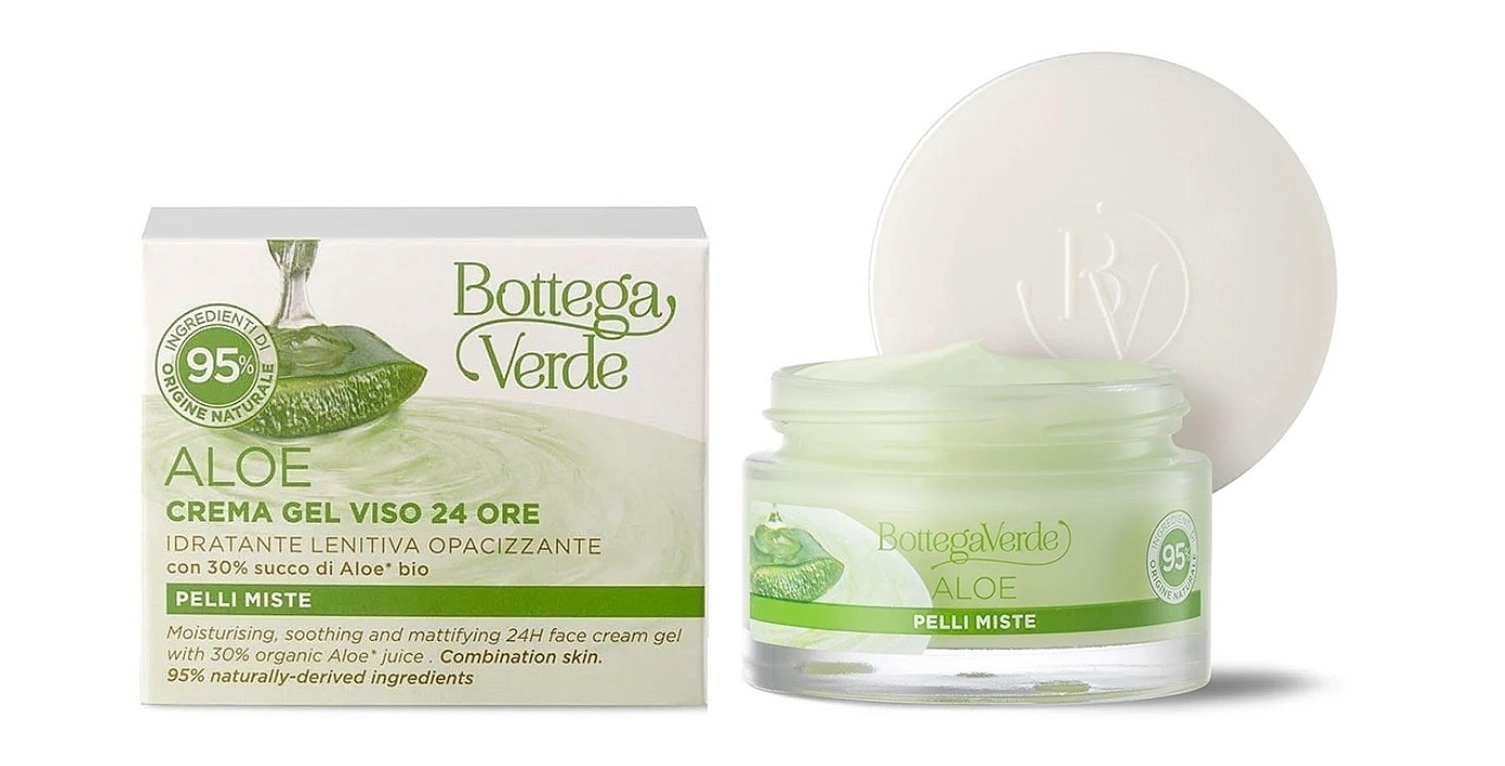 La crema gel della linea Aloe di Bottega Verde promette idratazione, opacità e capacità lenitiva.